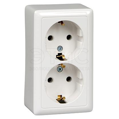 Розетка двойная наружная З/К Б/Ш 16А 250В IP20 белая ХИТ