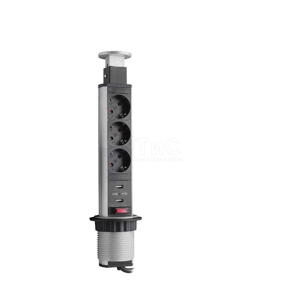 Розетка выдвижная VR-3SS-60 (серебр.)+2USB