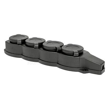 Розетка четырехместная 16А 230В 2P+PE IP44 с защитными крышками каучук PROxima