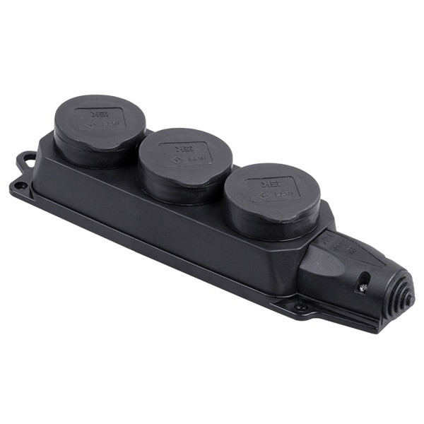 Розетка трехместная З/К 16А 220В IP44 каучук компакт