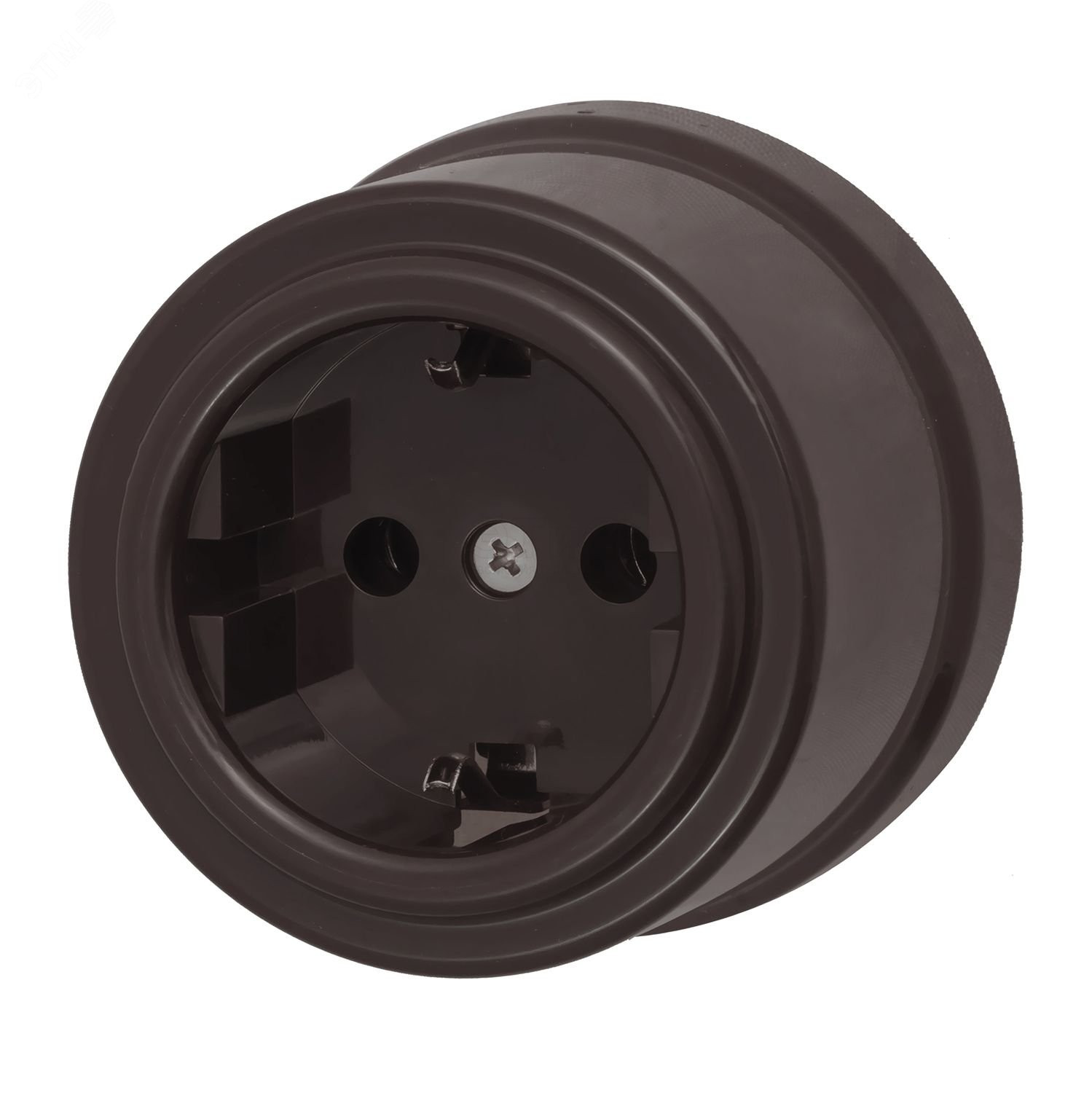 Розетка одинарная наружная З/К 16А 220В IP20 пластик коричневая