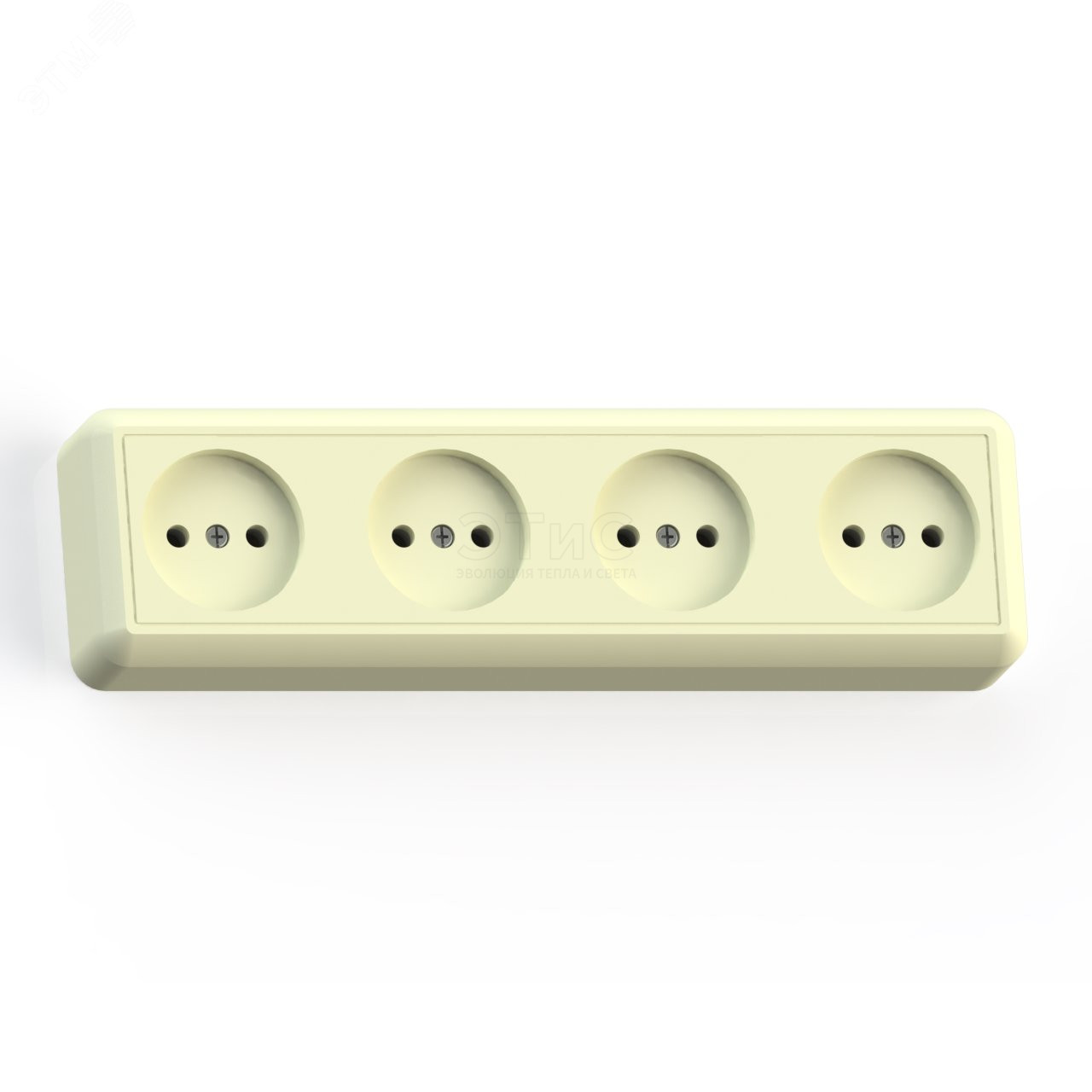 Розетка четырехместная наружная 16А 220В IP20 РА16-402 слоновая кость ОПТИМА