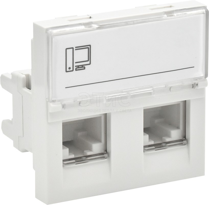 Розетка компьютерная RJ45 2 модуля 2 входа 5е белая PRIMER РКИ-22-00-П-5