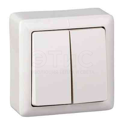 Выключатель двухклавишный наружный 6А 250В IP20 белый ХИТ