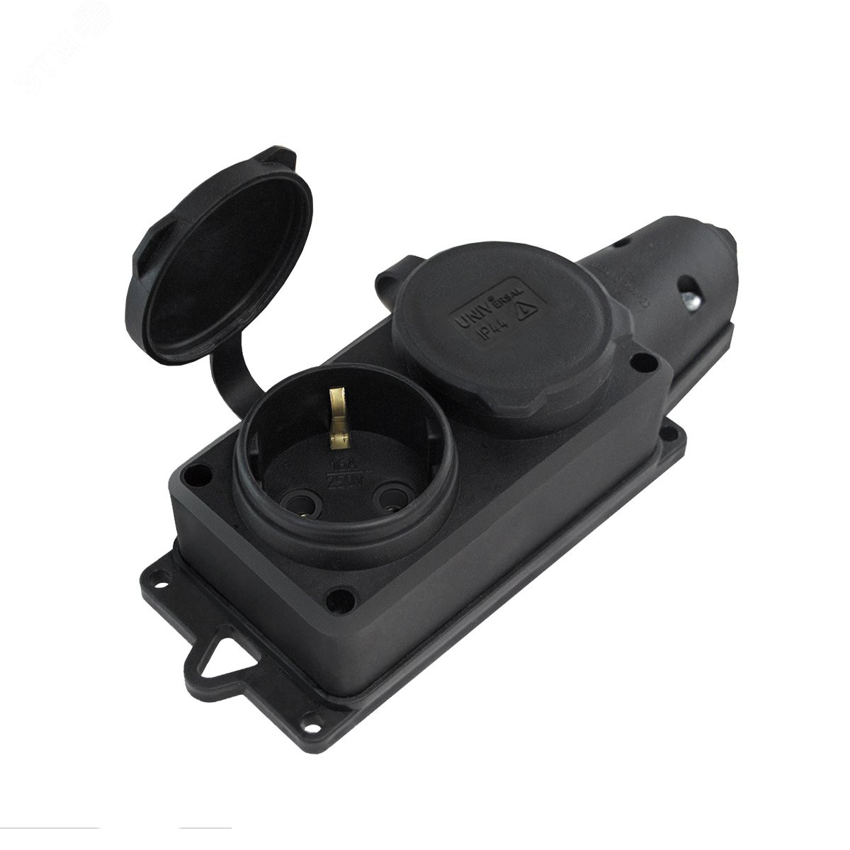 Колодка каучук 16А 250В IP44 2-х местная 1ф. с заглушками "Компакт" еврослот