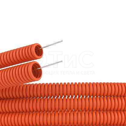 Труба гофрированная ПНД 32мм с протяжкой тяжелая оранжевая (25м)