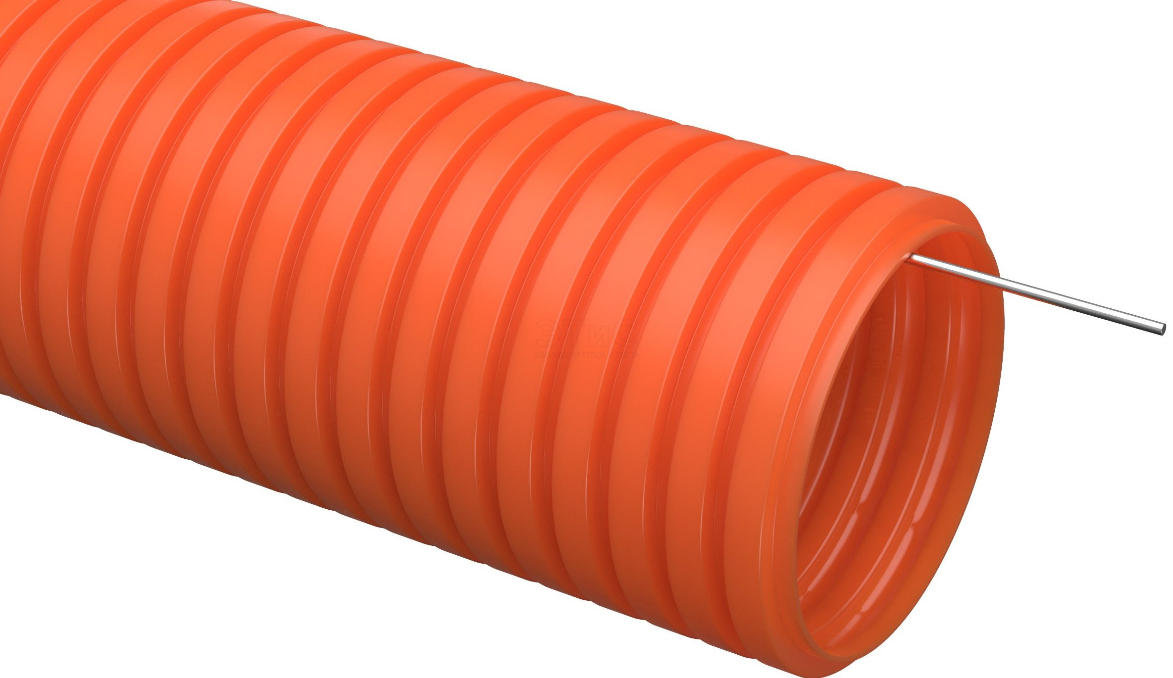 Труба гофрированная ПНД 32мм с протяжкой тяжелая оранжевая (25м)