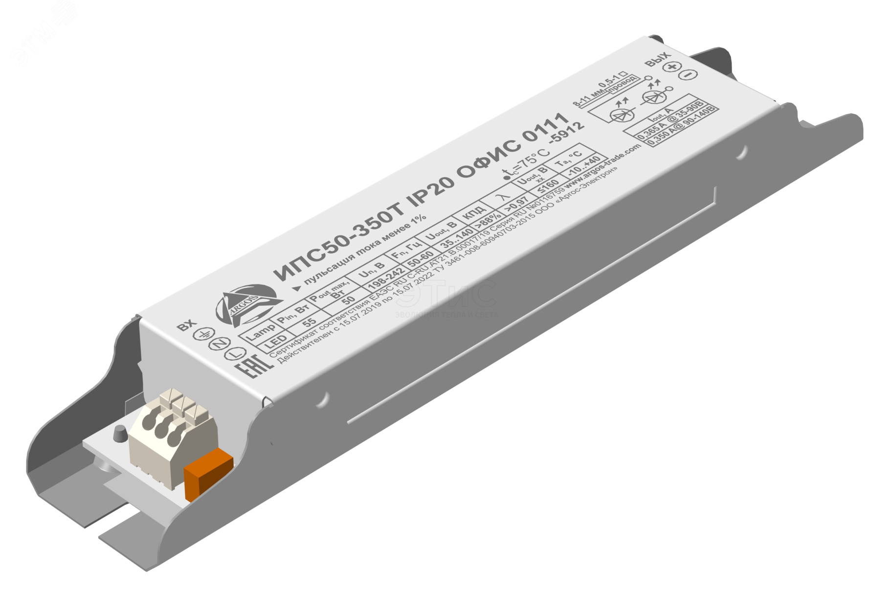 Драйвер 50Вт 0,35А IP20 ИПС50-350Т JABC 0111