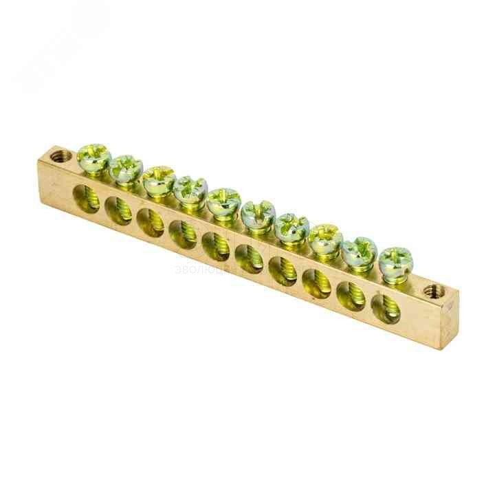 Шина нулевая (земля-ноль) 6х9мм 10 отверстий латунь крепеж по краям PROxima