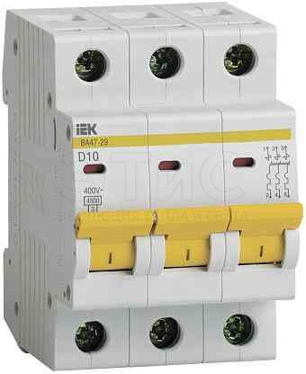 Выключатель автоматический 3П 10А D 4,5кА ВА47-29