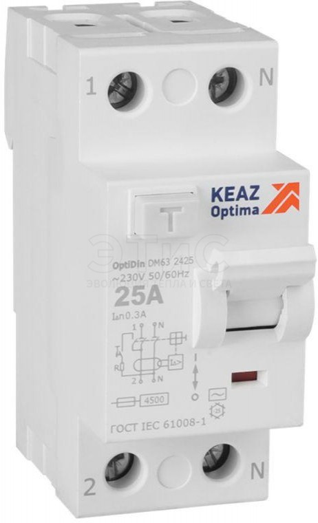 Выключатель дифференциального тока УЗО 2П 25А 300мА АС 4,5кА без защиты свертков DM63-2425-AC-4,5-УХЛ4 OptiDin
