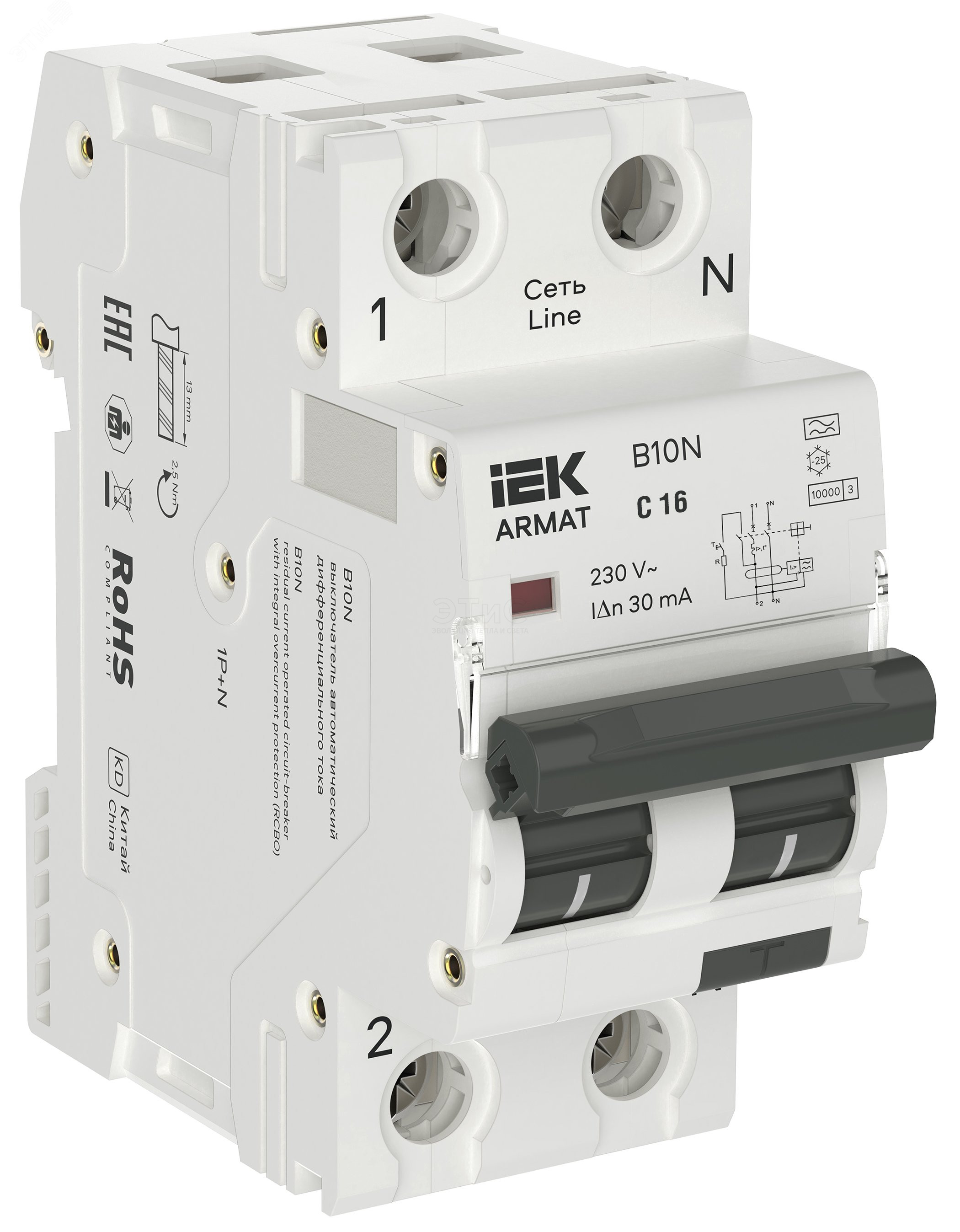 Выключатель автоматический дифференциальный АВДТ 2П 16А С 30мА 10кА тип А (36мм) B10N ARMAT