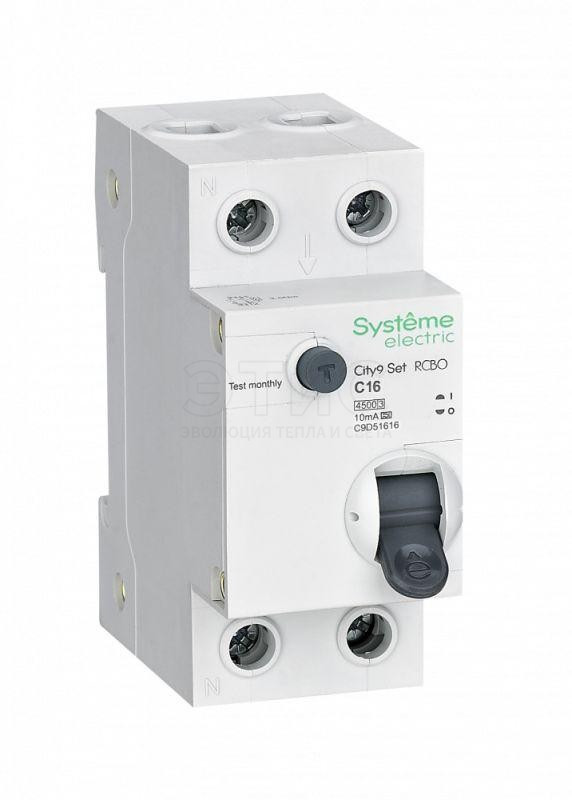 Выключатель автоматический дифференциальный АВДТ 1П+N С 16А 30мА 6кА АС 230В Systeme9