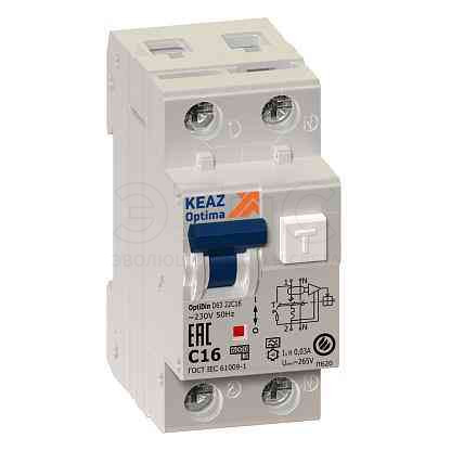 Выключатель автоматический дифференциальный АВДТ 2П 10А 30мА A OptiDin D63-22C10-A-УХЛ4 КЭАЗ с защитой от сверхтоков