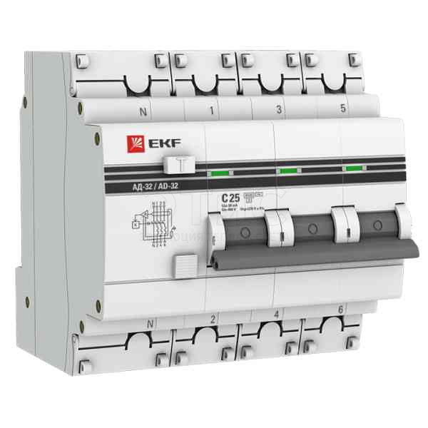 Выключатель автоматический дифференциальный АВДТ 4П 25А 30мА 4,5кА АД-32 PROxima