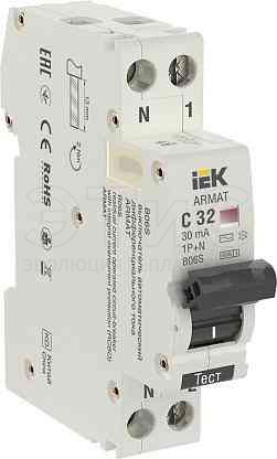 Выключатель автоматический дифференциальный АВДТ 1П+N 32А 30мА 6кА АС B06S ARMAT