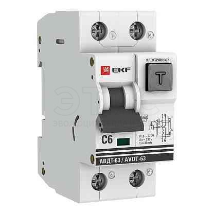 Выключатель автоматический дифференциальный АВДТ-63 1П+N 6А 30мА 6кА АС PROxima