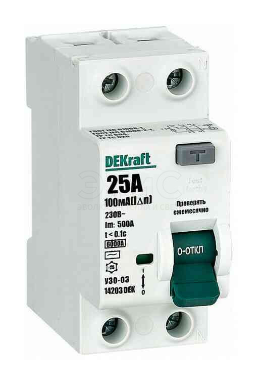 Выключатель дифференциального тока УЗО 2П 25А 03-6кА тип АС
